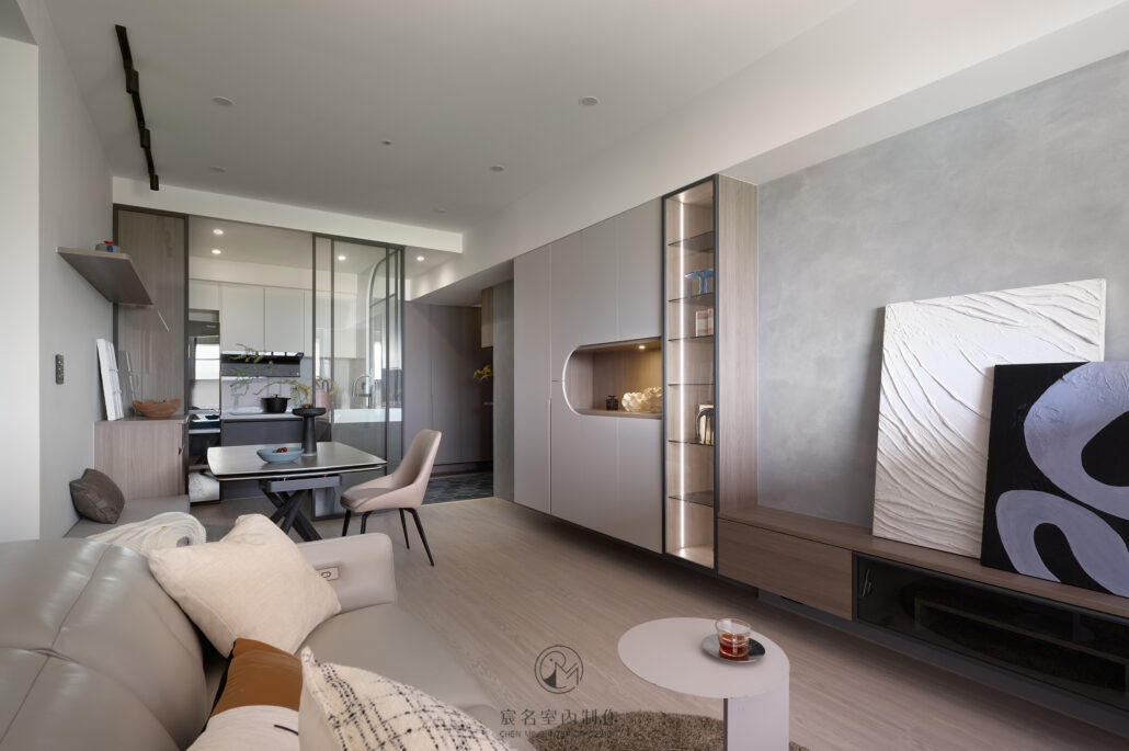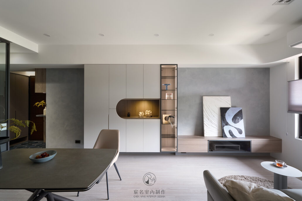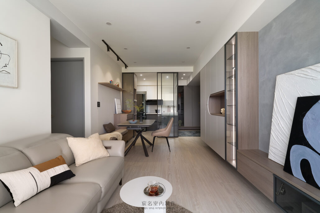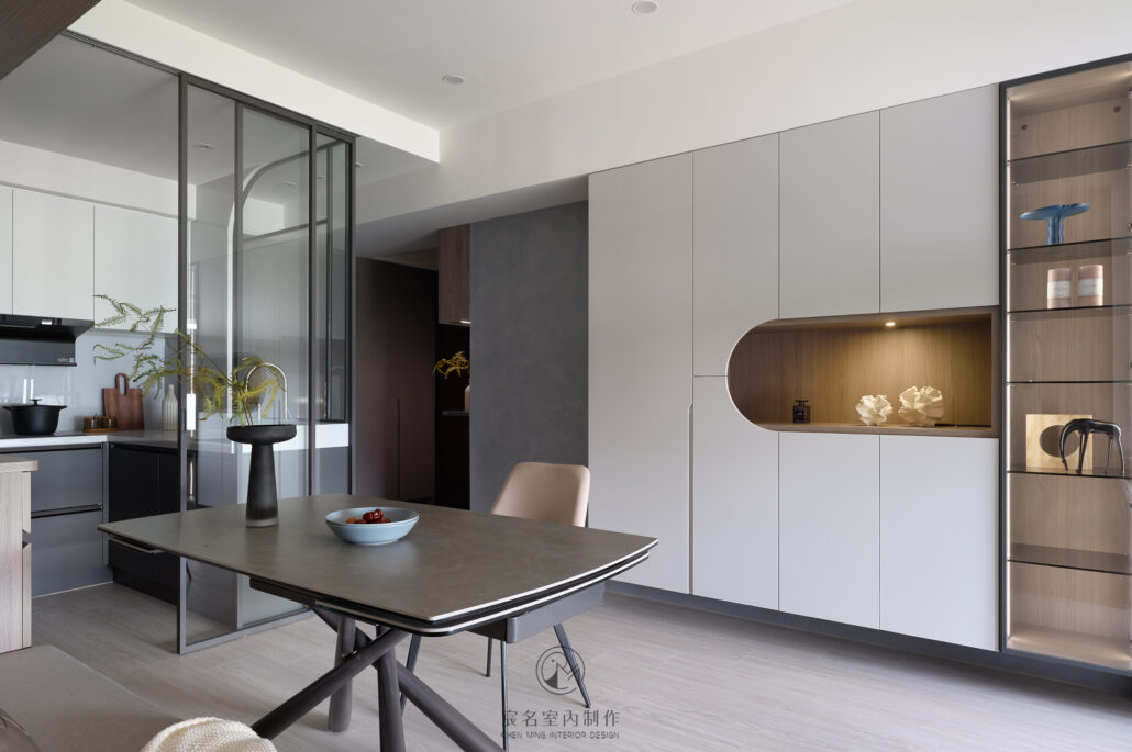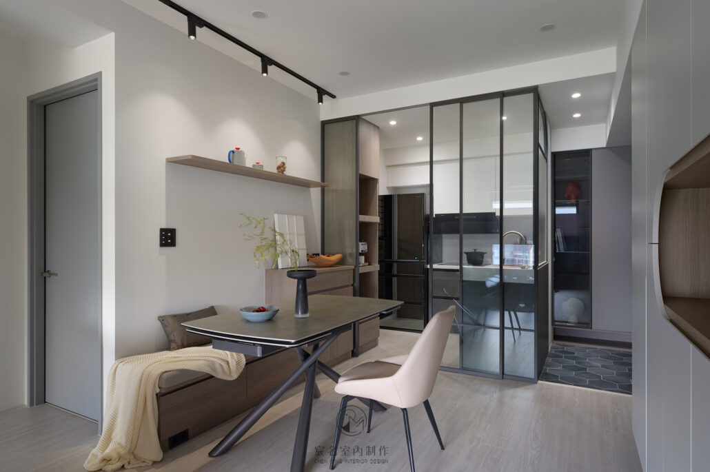 使用材料:烤漆鋁框門/EGGER系統板材/BLUM鉸鏈/得利乳膠漆/無醛屋/玻璃/鐵件/烤漆板/富洛克塗料/EGGER木地板/木紋玻璃/玉砂玻璃/SPIVER義大利特殊漆